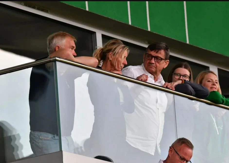 Woźniaccy oglądali starcie Podlasia u boku Dariusza Magiera, czyli wiceprezesa klubu wraz z jego rodziną.
