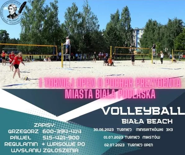 Grzegorz Piszcz oraz Paweł Wasiak zapraszają na cykl zmagań na piasku. Przed nami I Turniej Open o puchar prezydenta Białej Podlaskiej - Volleyball Biała Beach. Rywalizacja odbędzie się na nowych obiektach przy Szkole Podstawowej nr 6 w Białej Podlaskiej (ul. Leszczynowa 16).