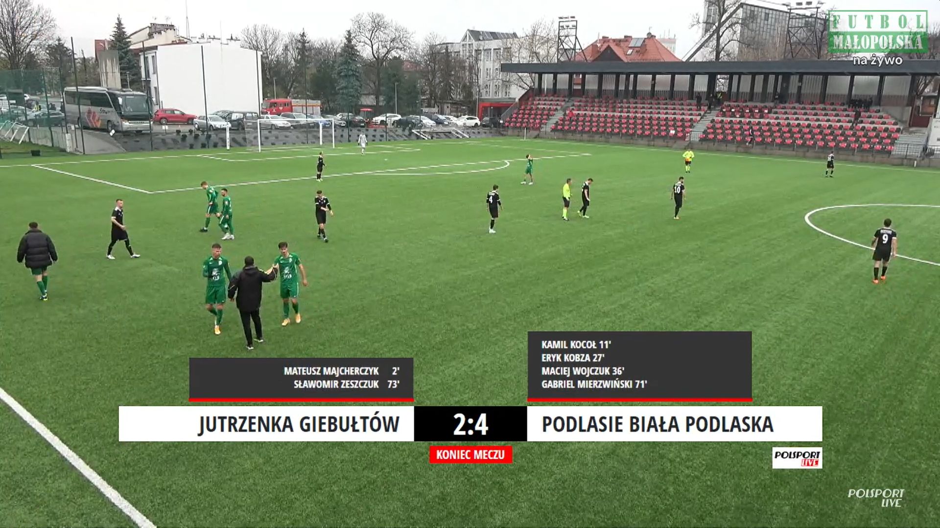 W 71 minucie Podlasie wygrywało różnicą trzech goli. Piąte trafienie w sezonie zaliczył Gabriel Mierzwiński. Niespełna 18-letni zawodnik przed przerwą zmienił kontuzjowanego Krzysztofa Salaka i po asyście Wojczuka utonął w objęciach kolegów. Gospodarze szybko zmniejszyli straty za sprawą Sławomira Zeszczuka, lecz nie było ich stać na dogonienie biało-zielonych.