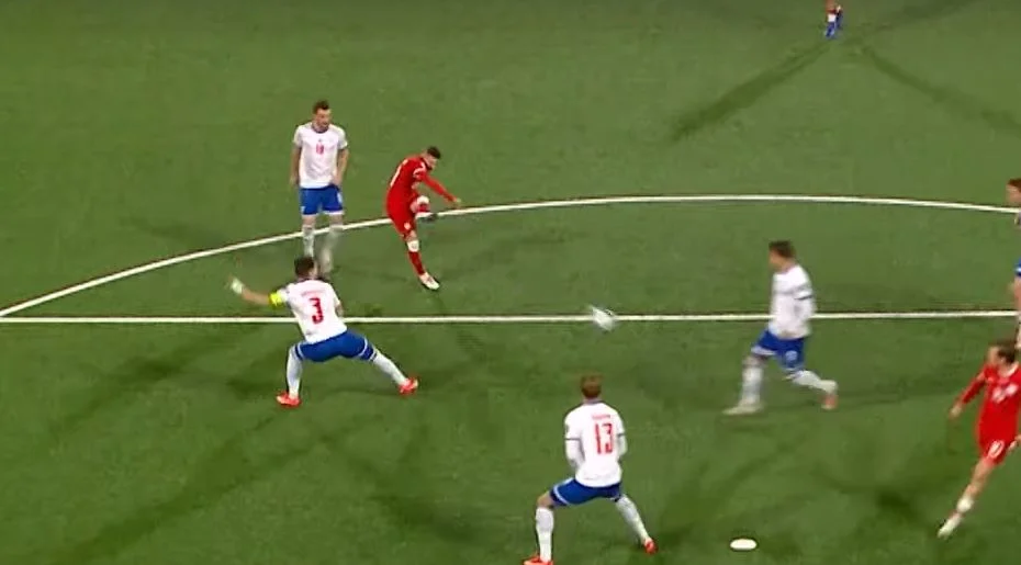 24-letni wychowanek TOP-u 54 Biała Podlaska zdobył gola otwierającego wynik spotkania. W 4 minucie najlepiej przed polem karnym odnalazł się Piotr Zieliński i podał do Szymańskiego, który lewą nogą nie dał szans farerskiemu bramkarzowi.