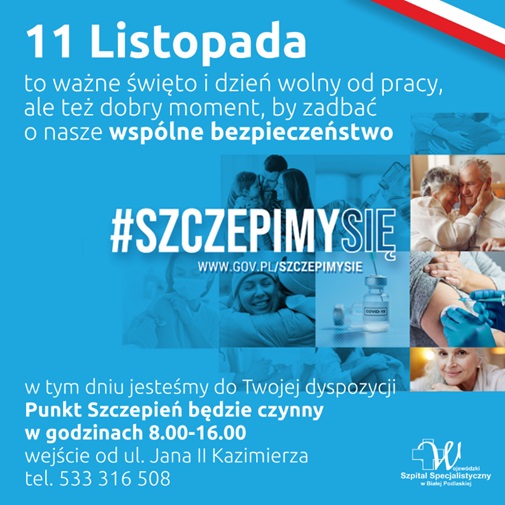 Punkt Szczepień zlokalizowany jest w kompleksie szpitala w wydzielonym obiekcie (wejście od ul. Jana II Kazimierza). Punkt będzie czynny w godz. 8.00-16.00. Szczegółowe informacje dostępne pod nr tel. 533 316 508.