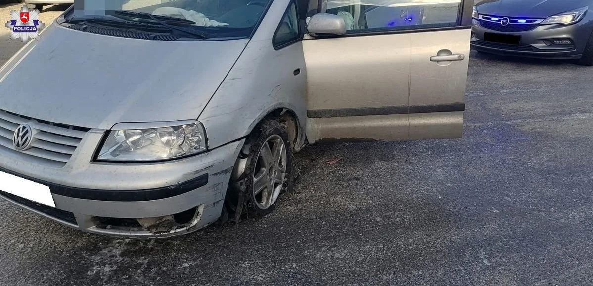 We wtorek (18 stycznia) w miejscowości Ulan Duży policjanci zauważyli samochód marki Volkswagen Sharan, który jechał z rozerwaną przednią oponą i na samej feldze.