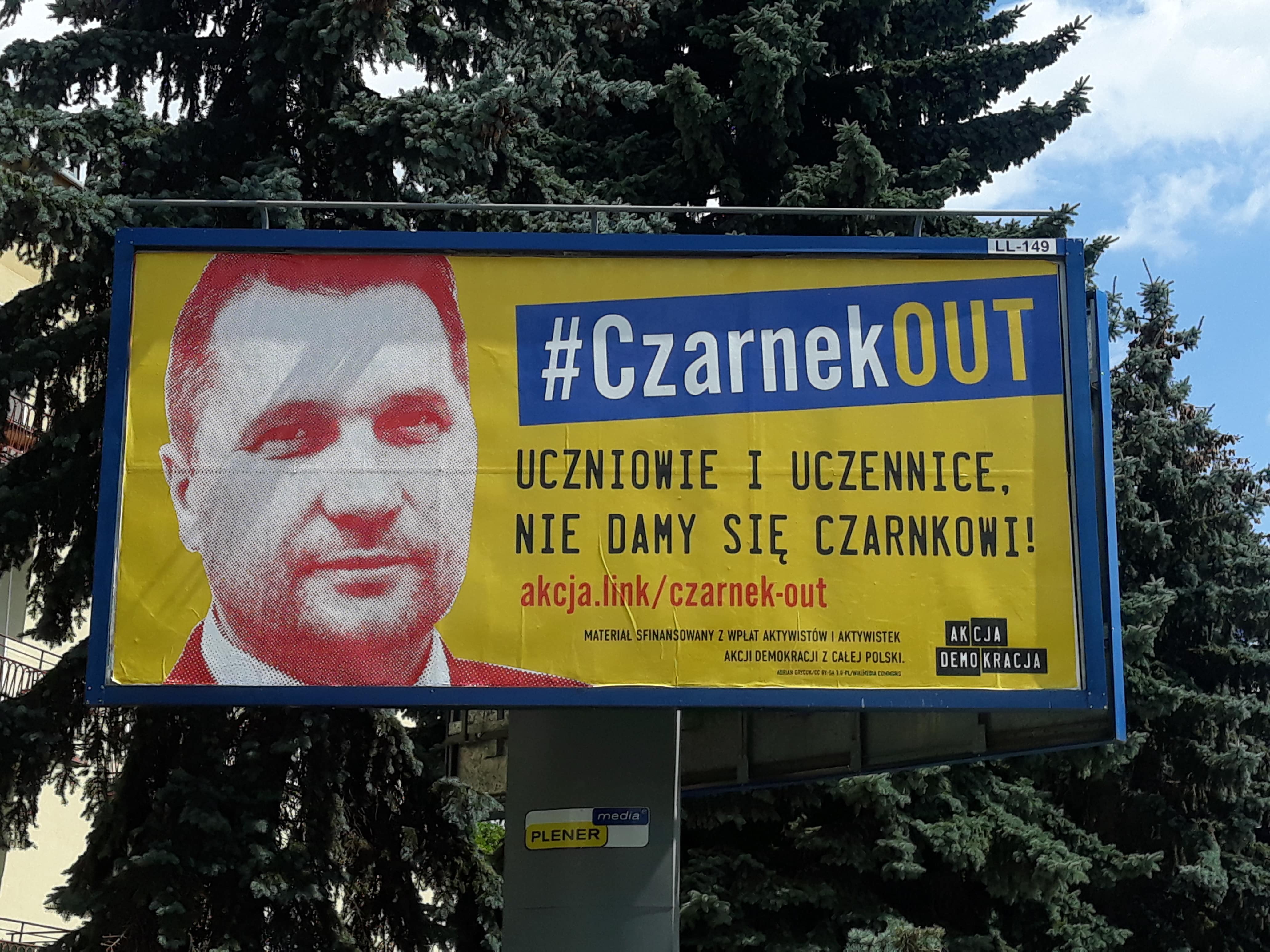 We wtorek (3 sierpnia) w Lublinie aktywiści zainaugurowali kampanię billboardową "Czarnek Out" nawiązującą do Przemysława Czarnka. Pierwszy billboard zawisł przy Al. Racławickich 15 - naprzeciwko I LO im. Stanisława Staszica. Na całą kampanię składa się obecnie 29 billboardów w 11 miastach w Polsce, z czego 9 w Lublinie. Nośniki wykupione zostały dzięki zrzutce aktywistek i aktywistów. Do tej pory wydanych zostało 50 tys. zł, a zebranych ponad 70 tys. zł, dlatego w najbliższych tygodniach pojawią się kolejne billboardy.